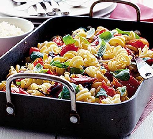 Śródziemnomorska zapiekanka makaronowa z bazylią
